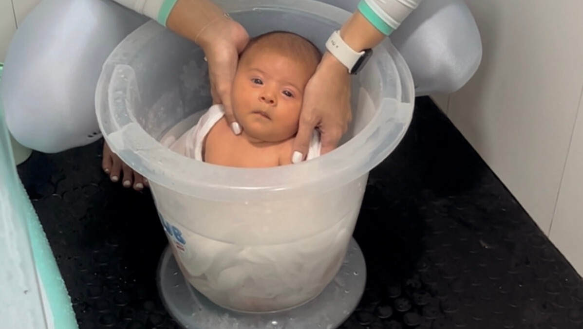 Davi chorava em todos os banhos até sua mamãe fazer a nossa consultoria e aprender as pegadas corretas e qual o lugar ideal onde os seus primeiros banhos deveriam estar acontecendo.